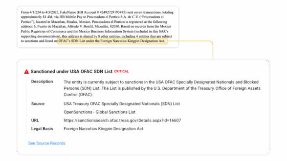 - Screen Against Sanctions: Trade data can be cross-referenced with sanctions lists to identify potential violations. A SAR is significantly strengthened when it can show that a suspicious transaction involved sanctioned entities with authoritative primary source documents.